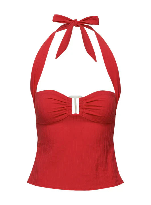 Add some flair to your wardrobe with the Isla Halter top! This stylish top is sure to turn heads with its unique halter neckline. The perfect blend of comfort and fashion, the Isa Halter top will elevate any outfit and leave you feeling confident and fabulous.